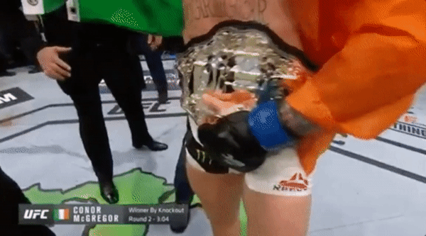 Conor đặt cả hai tay sau lưng để trêu tức Eddie. Tiếp tục là một cú knockdown! Và TKO dành cho Conor McGregor, nhà vô địch 2 hạng cân đầu tiên của UFC! Kết quả: Conor McGregor thắng Eddie Alvarez bằng TKO (đấm) 3:04 hiệp 2