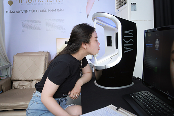 Tại gian hàng của ERI International, khách tham quan sẽ được soi da miễn phí với trang thiết bị hiện đại