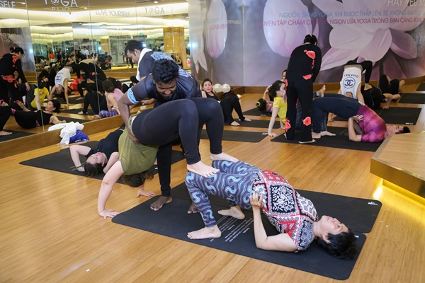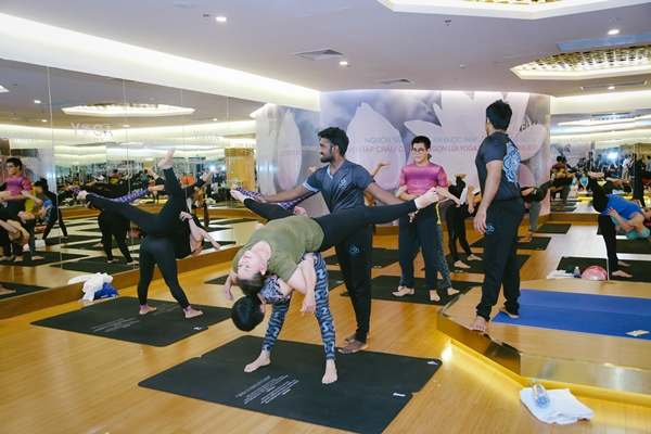 Hội viên cùng Yogi Master tạo nên các động tác đẹp mắt. Ảnh: Yoga Plus