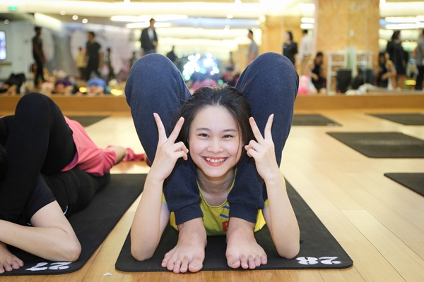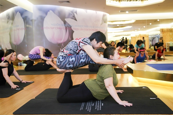 Nhờ có sự kiện mừng ngày Phụ nữ Việt Nam, hội viên Yoga Plus đã có dịp được trải nghiệm những tư thế Yoga mới lạ và độc đáo. Ảnh: Yoga Plus