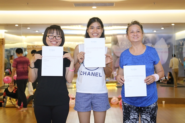 3 hội viên may mắn nhận được 3 tháng tập luyện miễn phí tại Yoga Plus. Ảnh: Yoga Plus